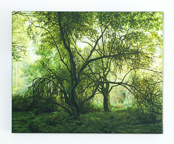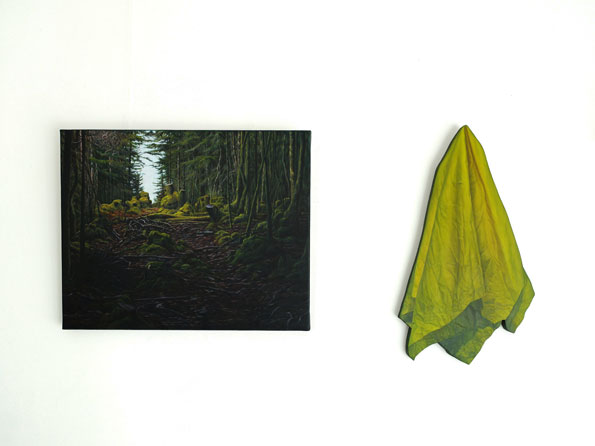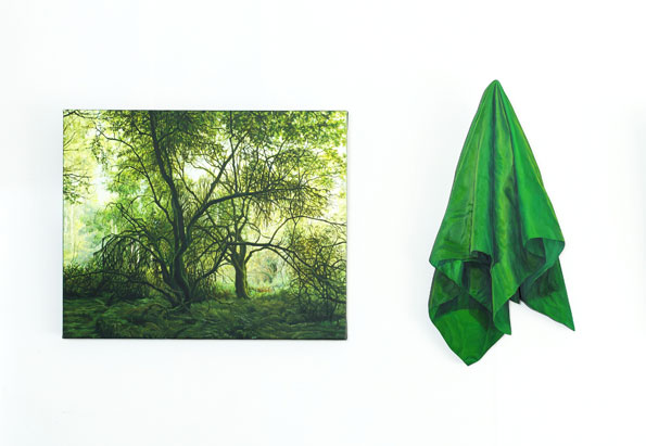 Support et techniques utilisés: paysage: huile sur toile, tissu vert: huile sur bois