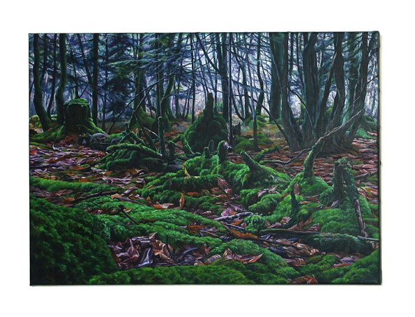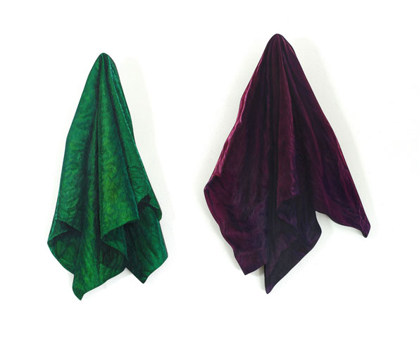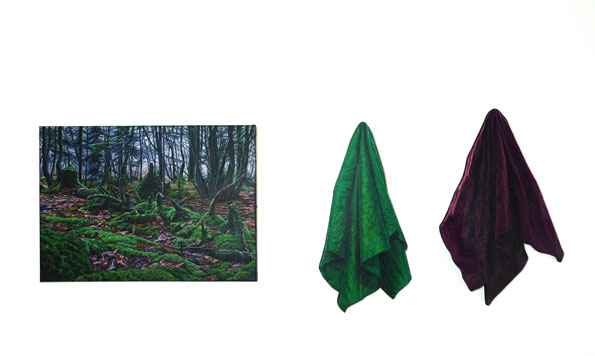 Support et techniques utilisés: paysage: huile sur toile, tissu vert: huile sur bois, tissu violet: huile sur bois
